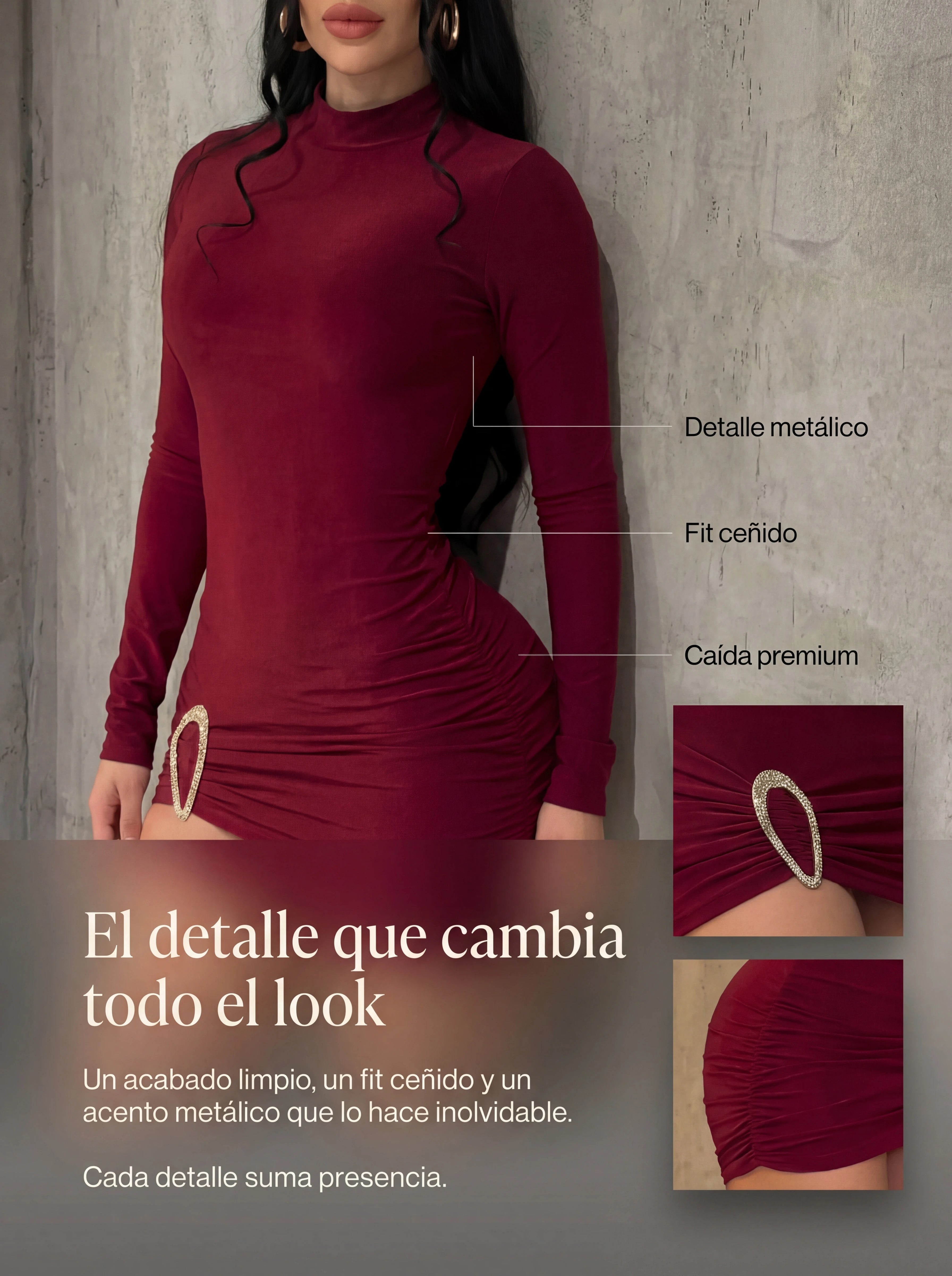 "Me lo puse con tacones altos y me sentí otra persona jaja. El cuello alto le da ese toque sofisticado y el detalle brillante en el lado lo hace especial. No parece vestido de $160k, se ve mucho más caro."